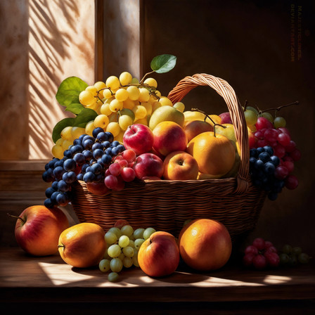 #photography #wallpaper #apple #basket #blueberries #digitalartwork #fruits #grapes #illlustration #orange #photorealistic #realism #strawberries