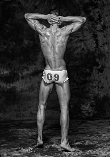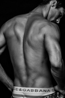 Great lighting -- together with the B&W it brings out his back muscles so wonderfully!