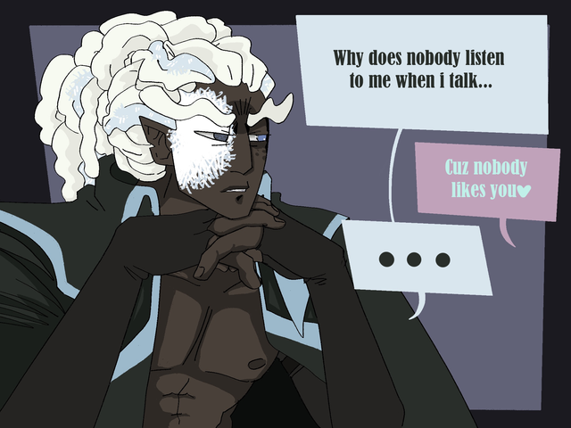 did this before and it was pretty fun, I updated the old picture since not only his design but also my drawing style changed (though the old one was just a quick comic style instead of my actual art style shh)ask him stuff ~ or make him do stuff I don't know