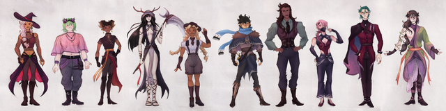 edit 2 people often noted that the characters looked short, and that was because I started with a short character and kept drawing the new one next to that one, only keeping the balance between the heights in mind instead of the actual heights - so I changed them to be taller. It took a while haha