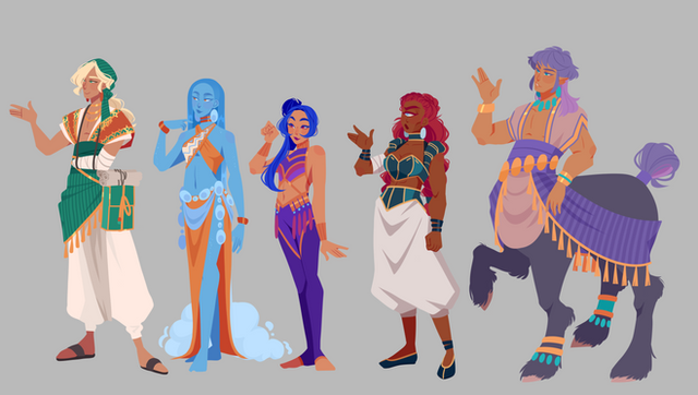 I love cabby's new design, its adorable, also Kit's is amazing! Ellanora and The Prince's clothes looks so cultured, The pirate crew blends together perfectly, the super hot trio (Nadi, Zerra, and Karo) are so frikkin hoooot those designs are so detailed! Gerret and June's armor look a million times cooler than they were before and much more sophisticated, I love that peacock female to male thing you did with the prince and the servants, Princess Ilda looks much more mature for some reason with this design and also more obviously from another kingdom with that medieval europe esque!