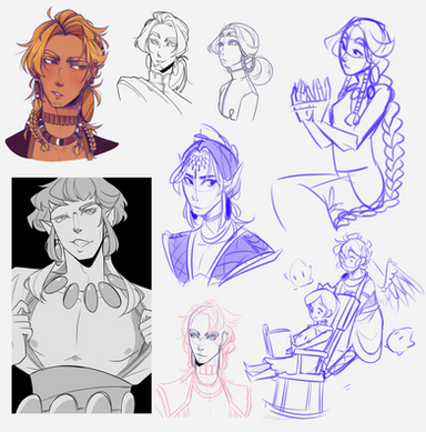These are all characters from my worldbuilding project, Gelea - they have their own script and I wanted to practice that a bit, so that's the little scribbles next to each character haha! It spells out each name
