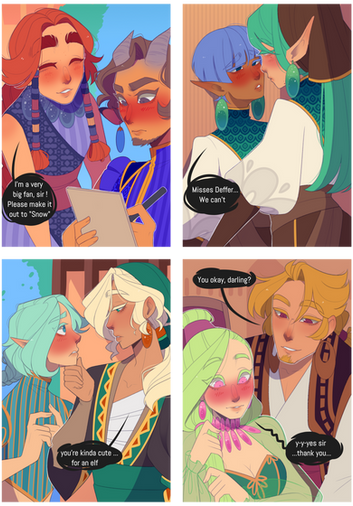 The Elf Is looking where she should not and the one with red eyes is staring at the other girls assets c: hehehhehehehe its stare ception