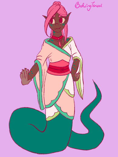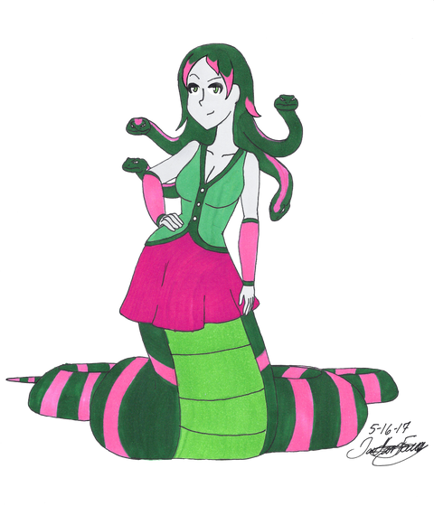 This is amazing. How did she get the snake tail? Was it a kind of curse?