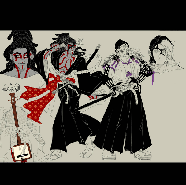 All I want to say now is that I'm planning to make this into a game (which is already in the making). It's something I'm doing in my free time and alone - so don't expect it to appear soon haha. There are more characters, but for now these guys are the ones I'm going to focus on. Like said before, they're personifications of instruments but also perform together. More coming soon ~