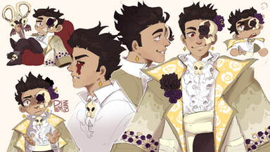 ♪ ANTONIO ♪ is basically the bitch boy of the group. And honestly also a tsundere, which people mentioned a lot too when describing what kind of personality they saw for him. At first I wanted to go for a more old-timey design but then figured I wanted to make it a little more modern to blend with the others better. Just like Frankie, he's an Italian instrument, making him of Italian descend as well.
