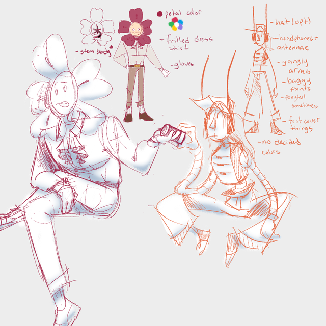 All I want to say now is that I'm planning to make this into a game (which is already in the making). It's something I'm doing in my free time and alone - so don't expect it to appear soon haha. There are more characters, but for now these guys are the ones I'm going to focus on. Like said before, they're personifications of instruments but also perform together. More coming soon ~