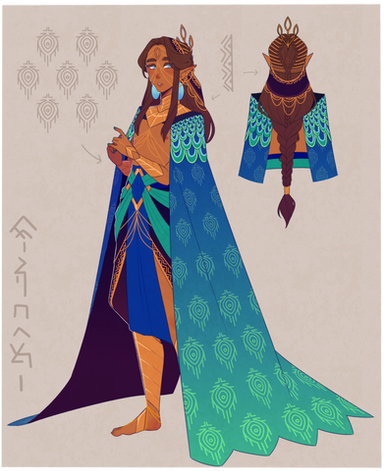 Lovely design, her hair looks amazing and I love transferring her horn design to her staff