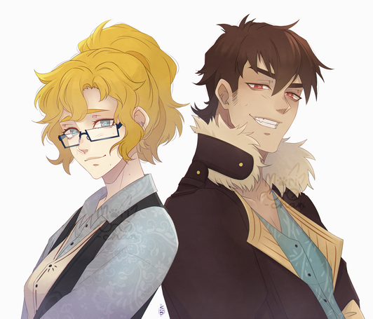 Oh my god I LOVE your art style! It's so pretty! And the character designs are awesome! So many cool little details. And I am in lovveeeee with the redhead's eyebrows AHHH~