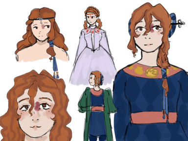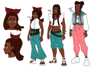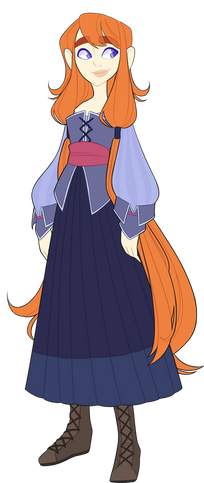 great design, i'm especially interested and endeared by the clothing style and various elements in her outfit