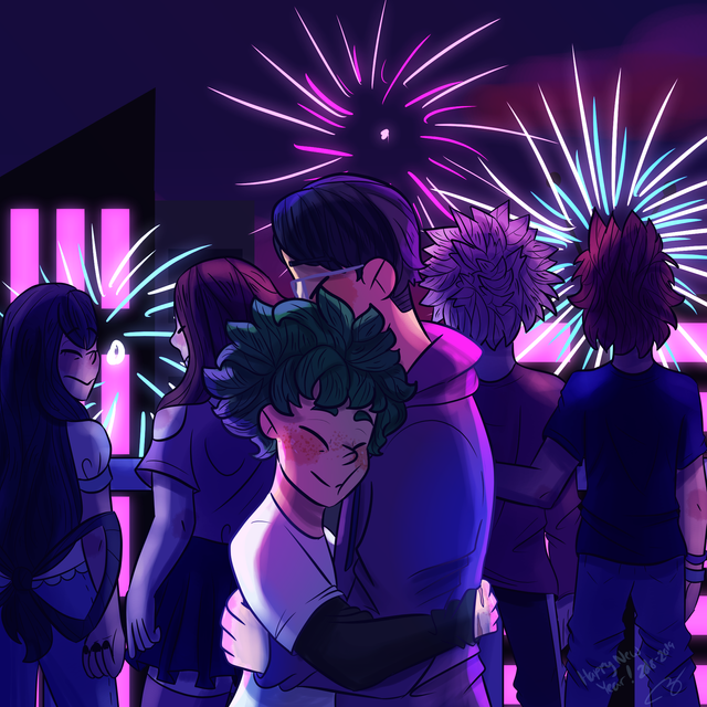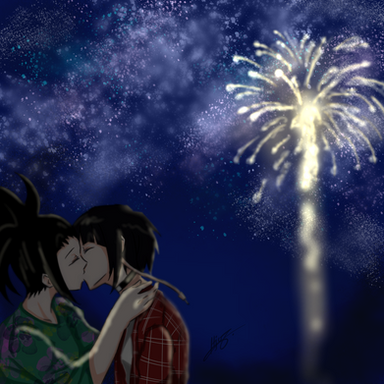 "And in some bizarre act of fate, the next fireworks came in a pair, with blue and green lighting up next to one another, close enough that the sparks seemed to entwine. And in the sound of the explosion, as people down on the ground cheered, no one else was aware of the kiss that was being shared at the top of the hill." - Festivals and Fireworks by Iamtypingarchiveofourown.org/works/15165545