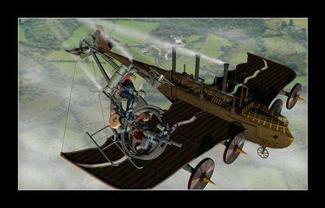 My intent here was to depict the flying machine, somewhat modernized for the Victoria Era, hence the clothing I drew onto the pilot. I know this is not an original idea, but this is my take on the whole “early” flight idea.