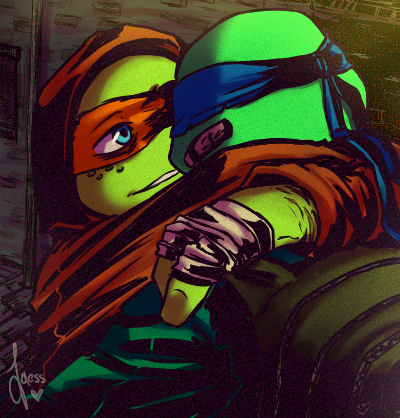 Lol! No, Raph is watching their back cuz Leo is injured.
