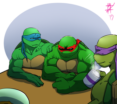 Naw...Leo yawning worked out better...Raph can't do that to Donny after he showed him how to work on stuffs...! Okay, so maybe he could if he was in that kind of mood...