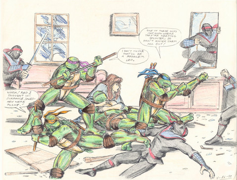 Go Donnie, go!! Don't let that harpy eart Raph!! the postures are incredible