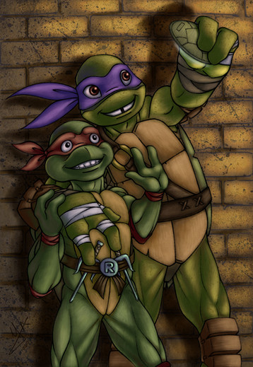 This looks like such a typical day Judging by Donnie's expression Mikey's giving him a run for his money there!