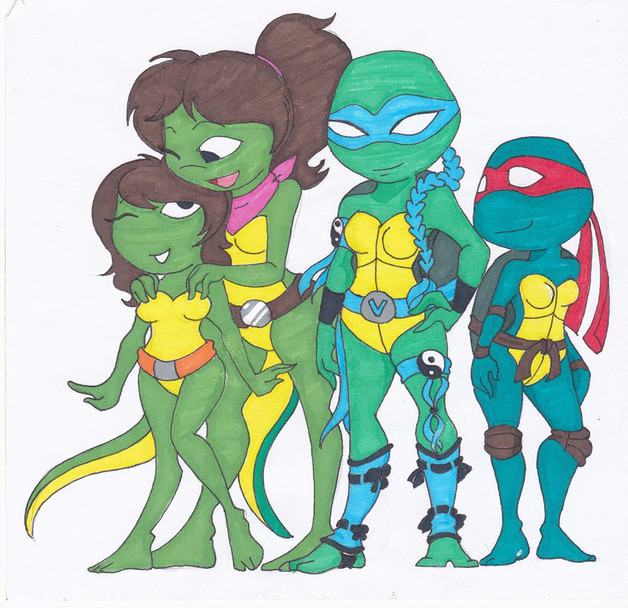 Hooray for female turtles... and yours have the same headband colors as mines' hair o.o That weirded me out for a sec before I realized they were headbands. Nice designs, too ^^
