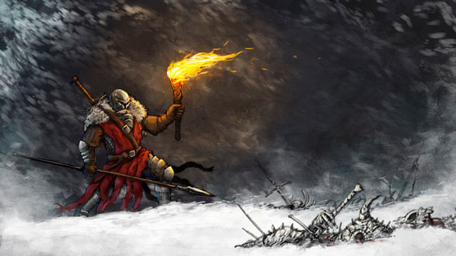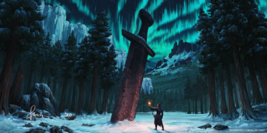#axe #borealis #deathless #duel #fantasy #scenery #snow #sword