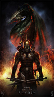 "For fair Skyrim will be free from foul Alduin's Maw!"A painting of my character. a level 26 nord named Raymond.
