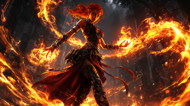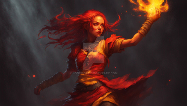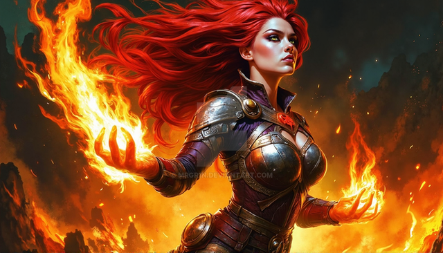 #digitalart #characterdesign #videogamefanart #warrior #magic #fantasyart #fantasycharacter #wallpaper #redhair #ai #dreamup #ai_art