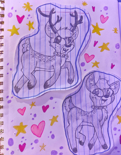 This was very fun to draw, I did it with thick lines on the outside and thin lines in the inside hehe! :]And I put some red sticky paper on top of the Rudolf to look like is popping out!