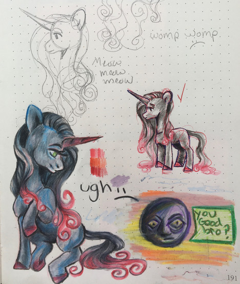 I ADORE THESE doodles especially the middle pony, got inspired by one of those infection My Little Pony au's so I tried to make my own infected pony which I ended up rlly liking it!