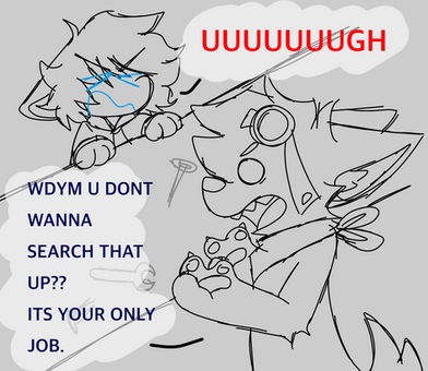 The wolf's toe thing was supposed to be a middle finger, then I remembered that wolves don't have middle fingers so I just made him point angrily. Also, his design is based off one of my own arctic wolves :U