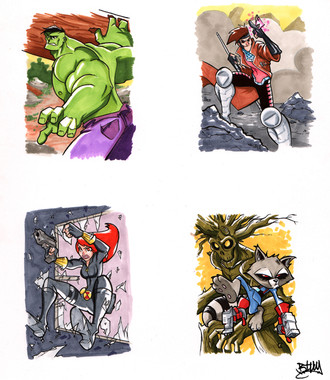 For the Black Widow piece I just can't help but hear one her defeated foes reply - in a weak, stunned, pained way - "Happy...*groan*...to be...of service", before passing out.