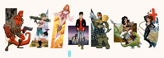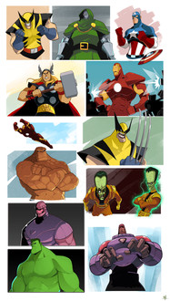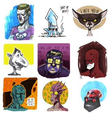 Bunch of doodles from the other day that I thought I'd add a bit of quick colour to.Pencil, ink, colour in photoshop.