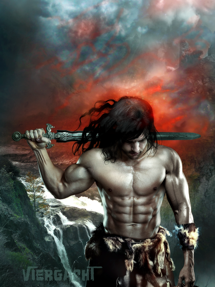 There's a scene like this in Joe Abercrombie's First Law trilogy Barbarian fishing with his bare hands. This could be Logen Ninefingers, if you scarred the hell out of him.
