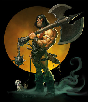 Every time I see this I can't help but think of a seriously demented Conan the Barbarian...though I can't quite imagine hearing Ah-nold screaming Gwonks catchphrase.