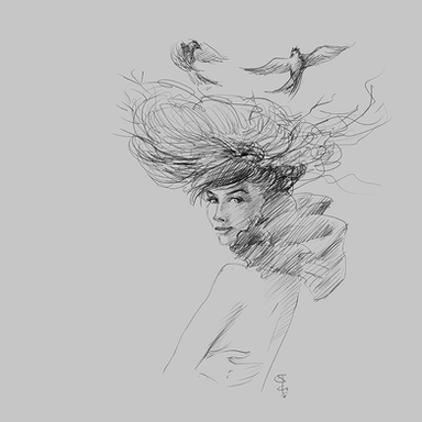 Other than the birds and eggs, she'd look like of the Gibson Girls.