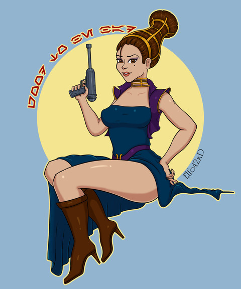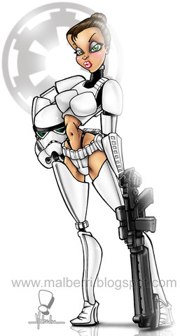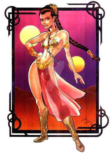Generally don't like showing works in progress - I often change a picture while I'm working on it, but she's pretty much finished - Its the background characters and, well, backgrounds that I'm still working on. Based on a silly pen and ink cartoon pic I drew some years back, and was meant to be just a quick colouring excercise. Ended up dropping the ink outlines and going more full on painterly. Apologies to all the hardcore SW fans out there - Lukes sex change operation obviously went well!Related content