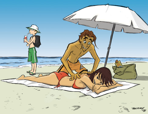 Reworked rejected pitch for a surfshop from many years back.This is little on the dull side with little or no narrative, but it helps if you imagine a stream of seagull poo dribbling down the guys back.