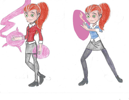 Thought I'd draw Charm again, because she's cute and deserves to be drawn more. ^-^ So here she is, using her powers. They're a lot like her mother's powers, though the effect they have on a person/object is completely random. Tweaked one tiny detail on her uniform but it's barely noticable. And I made her face more round so she looks a bit more like Jinx.Yep, I'm happy with this.