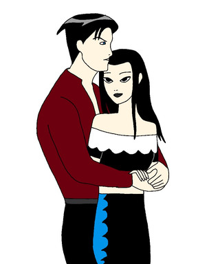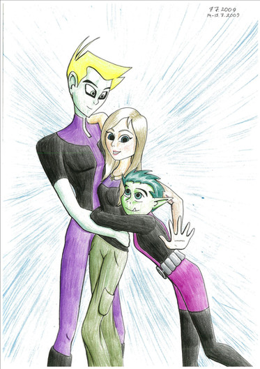 A little surprise gift for and .I hope it's okay that I did this! I've seen quite a bit of Magefire and Typhoon and I think they're both so pretty. They're both dating Red X (Jason Todd) and are happy to share him. So I wanted to draw the three of them together. ^-^ Jason's a lucky man!