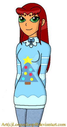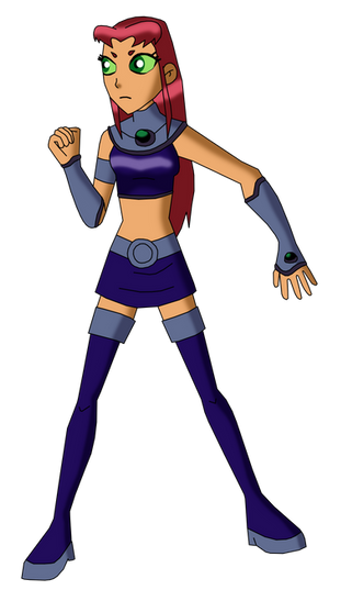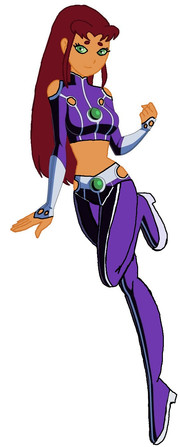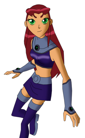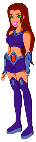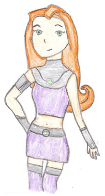 A gift for . She was struggling to come up with a final design for her Teen Titans OC Saphfire, so I had a go at redesigning her.We were talking about how female heroes can be sexy without wearing next to nothing, so I tried to cover up a lot of her while sticking close to the Tamaranian style. Her uniform is pretty simple, but the same goes for Starfire and Blackfire, and most of the other Tamaranians too. Her hair is wavy instead of straight like Star's, and I made it a slightly darker shade of red.