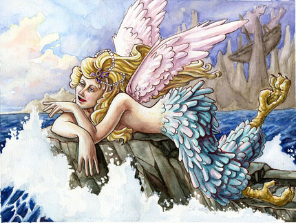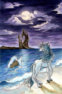 This is one of my darker images (in subject matter and in pallet) But I liked how it turned out, it was fun. The assignment in class was Jack the Ripper or the Boston Strangler and being a children's book artist I really didn't want to do either so I convinced my teacher to let me do the next closest thing... and now we have Bluebeard! The fairytale slayer of wives! Lots of fun : )Watercolors on cold press paper