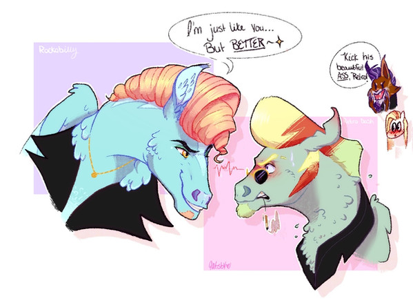 No such luck. Her response, cold as it was, only prompted the stallion to continue. He sighed happily. "You had such wonderful stage chemistry with your partner, too. Even though your singing styles are complete opposites, your voices compliment each other so well! Like....shadow and sunshine, all woven up together."