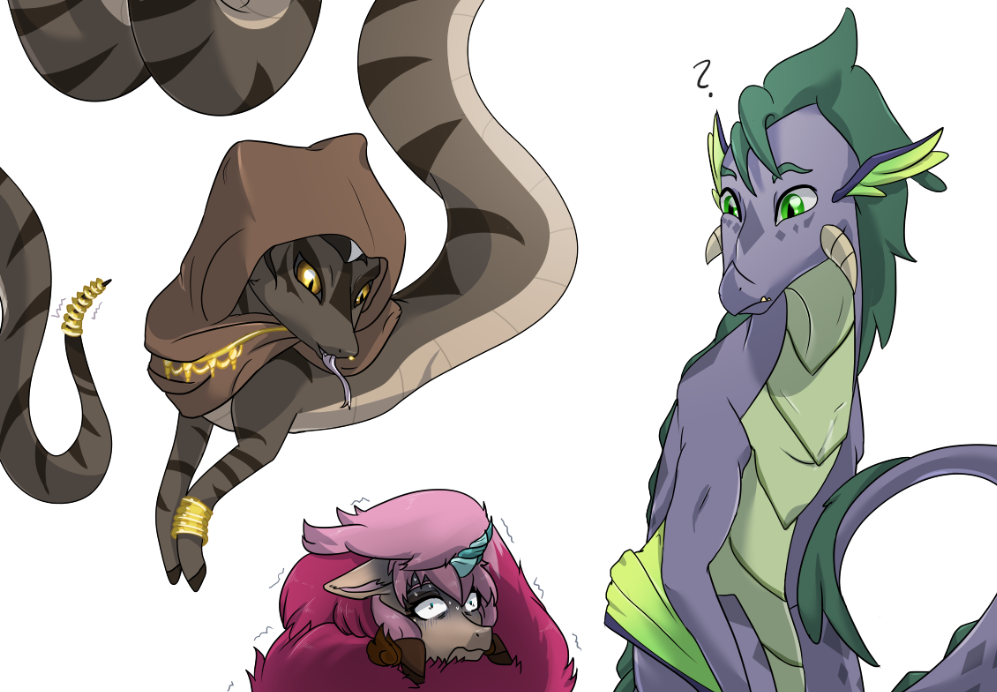 i realized i haven't shown much of Pan's shapeshifting abilities. She loves becoming various animals, with snakes, big cats, gerbils, and chickens being her favorites. She's also fond of magicking Moondancer into various cute rodents when he tries picking fights