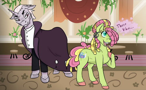 "Not you again. You've been frequenting this dance studio on purpose, haven't you? Wait-is that your music playing? W-why is it so profane? Ahh! Filth! F-filth and vulgarity! There! You had to have heard that! T-that singer just said the B-word! That's in reference to mares, not female dogs! Surely, you must find all this obscene....not to mention objectifying? A-and why are you up on that pole? I-I thought that sort of dancing w-was reserved for...ponies with no other means of earning money. Do you not find it demeaning?""You don't get out a lot, do ya, creampuff? I wrote this song." Zee shrugged. She lounged easily upon the studio's dance pole, and her casual smile irked Moondancer beyond belief.Β "You'd best scoot along, boo. Mama wouldn't wanna offend any more of your delicate sensibilities." She winked at him, before slinking and twisting into a new pose up on the pole....a pose that didn't leave much to the imagination.