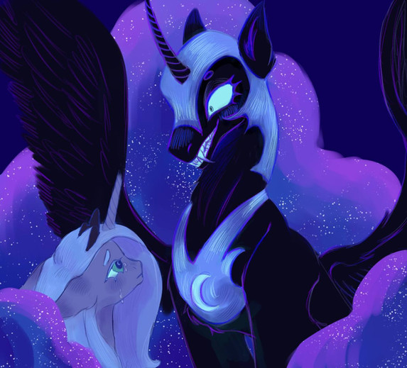 “What is the source of your sorrow, my lieutenant?” Artemis’ voice echoed dully in Nocturnus’ mind, like cool rainwater dripping in a cave. The bat pony spoke, sluggish under the spell.