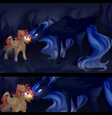“No, it’s not that...I just….” Nocturnus’ ears slicked back, and he gave a quiet sigh. Artemis paused, before reaching out and placing an awkward hoof on the smaller pony’s shoulder.