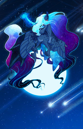Cosmos lay curled like a house cat within a moon crater, dozing. She felt at peace, for the first time in eons.It was true, for the first decade of her lunar imprisonment, she had rioted, she had despaired, she had carved cusswords into the surface of the moon, in the hopes Luna or the ponies would see them in the night sky. But after years of throwing a childish tantrum, she had finally come to appreciate the stillness. The moon offered her privacy, isolation from the wretched, saccharine little equines, and best of all, silence.