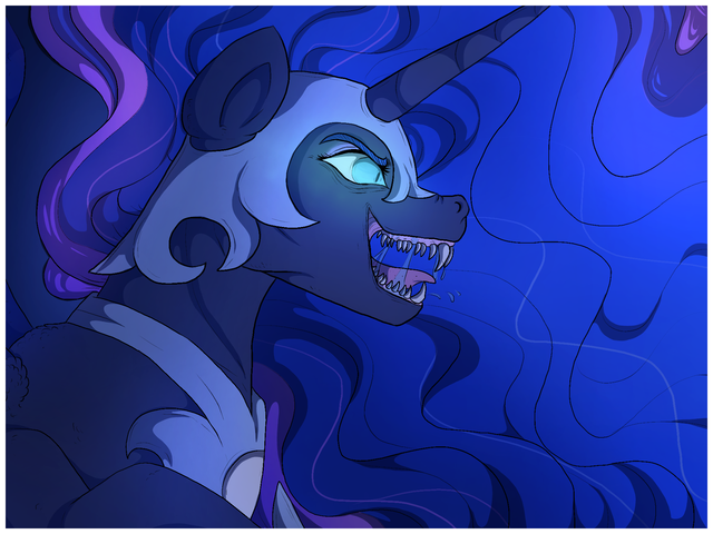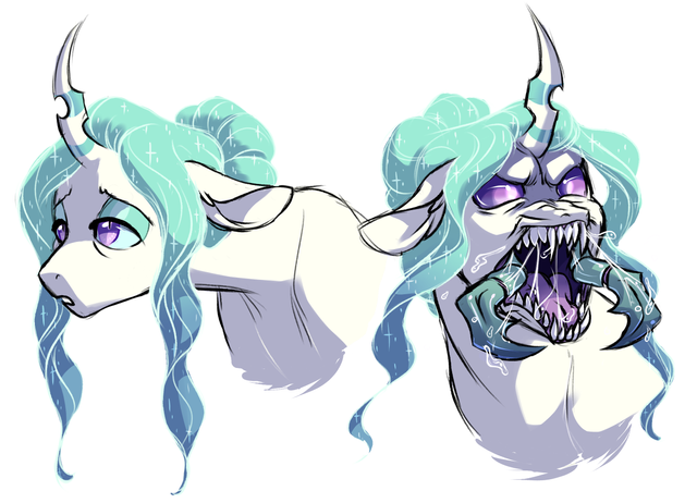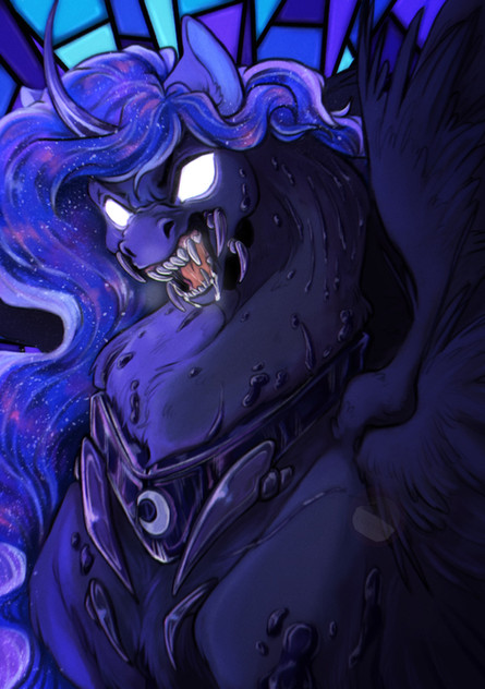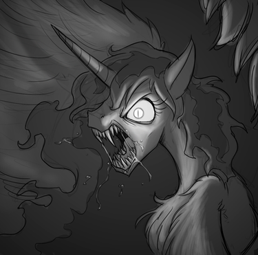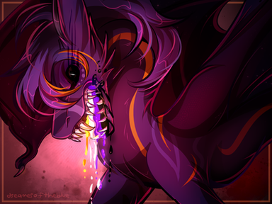 Woah, this is gotta be the most intense thing you've drawn. If this hasn't settled the gender question, I don't know what will. Eesh, just LOOK at the strawberry juice/jelly/blood. I think you may have just ruined red fruit for me. X) And the blackness of Artemis' mane, wow. What a bad day, man. Everybody better get the flip away. ^.^