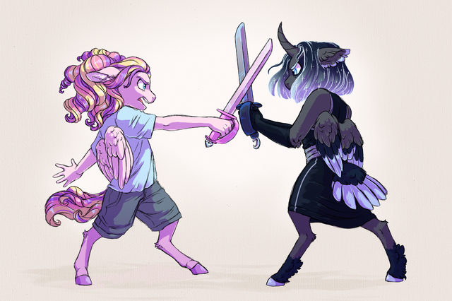 I don't like dumb arguments in my comments section. To clear things up, your comment is not a critique. It's just you giving an unwanted lecture on something everyone already knows. It comes off as patronizing. Ponies can't snarl, true. But in art and in storytelling, you have to make visual shorthands, which means making a pony snarl to indicate aggression. When real life horses are angry, they mostly just pin back their ears. If I drew Skyla and Moony only with pinned back ears, it wouldn't convey as much story, and it wouldn't look as interesting.