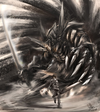 Makes me think of a rogue Ringwraith breaking free of servitude to Sauron and confronting him head-on. Congrats on the DD.