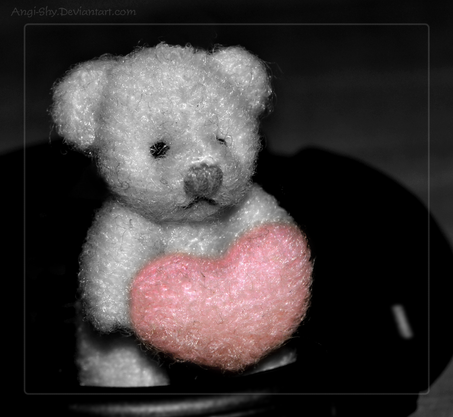 Wszystko byloby naprawde fajnie gdyby nie kadr... Wedlug mnie nie powinnas obcinac tego misia u gory. Wiem, ze chcialas poeksperymentowac z kadrem i stworzyc cos niebanalnego, ale uwierz mi, ze czasami warto zrobic cos klasycznego, ale dobrze .