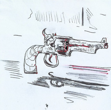 Well, I was caught drawing guns in school. I got in trouble. Now, I can't draw guns til' I'm in collage.