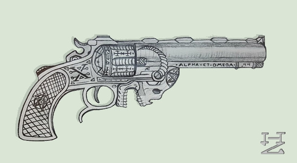You may also be interesting in his gattling pistol-as the comic progresses he gets sick of the chain pistol and finds a way to use his magic to power it instead of electricity